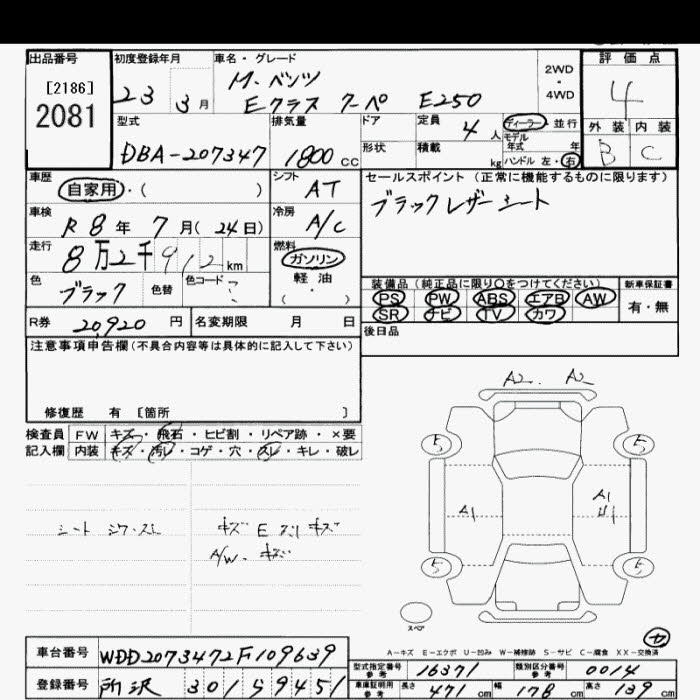 MERCEDES-BENZ E CLASS E250 - лот 2081