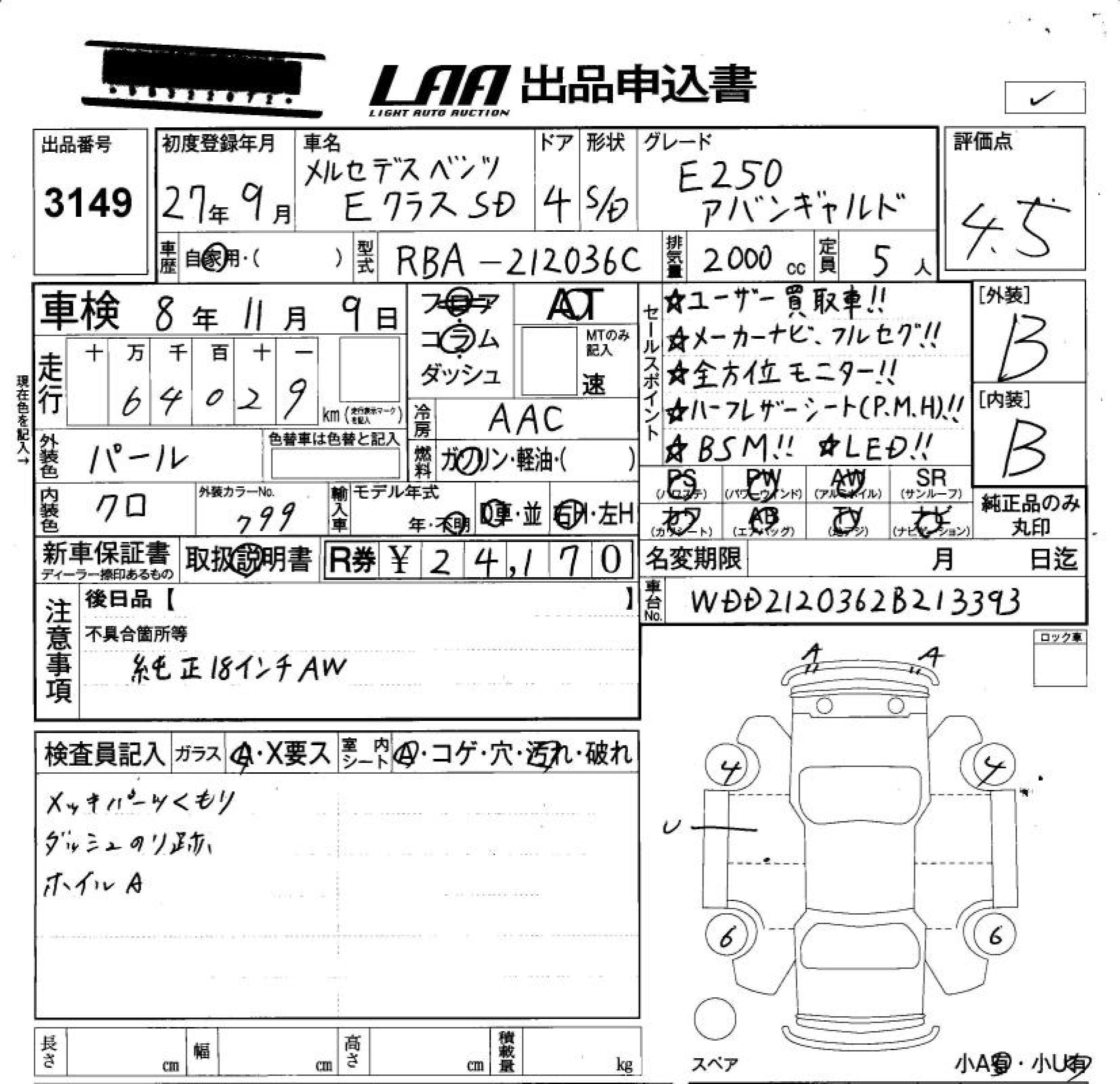 MERCEDES-BENZ E CLASS E250 AVANTGARDE - лот 3149