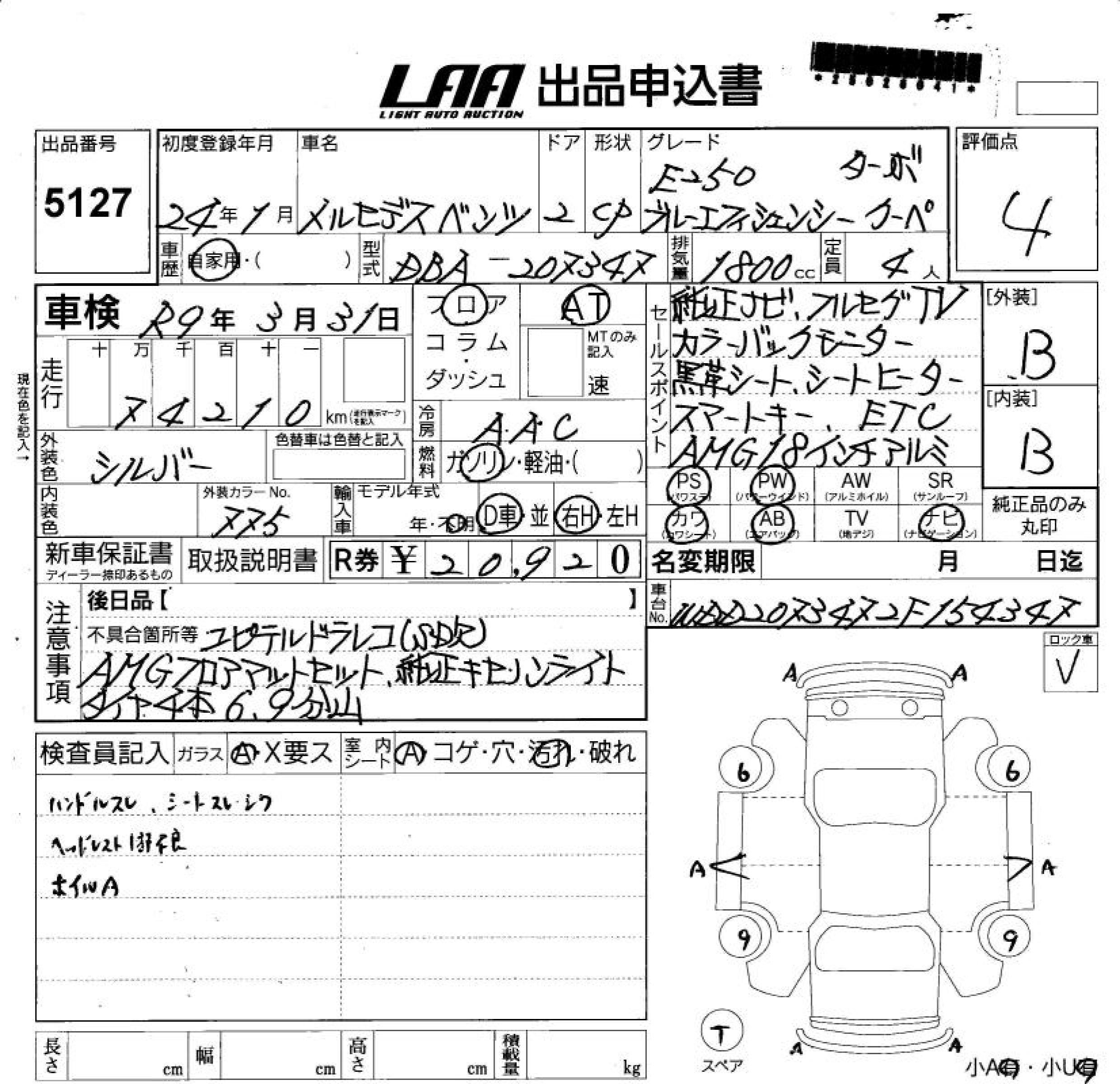 MERCEDES-BENZ E CLASS E250 BLUE EFISHENSI - лот 5127