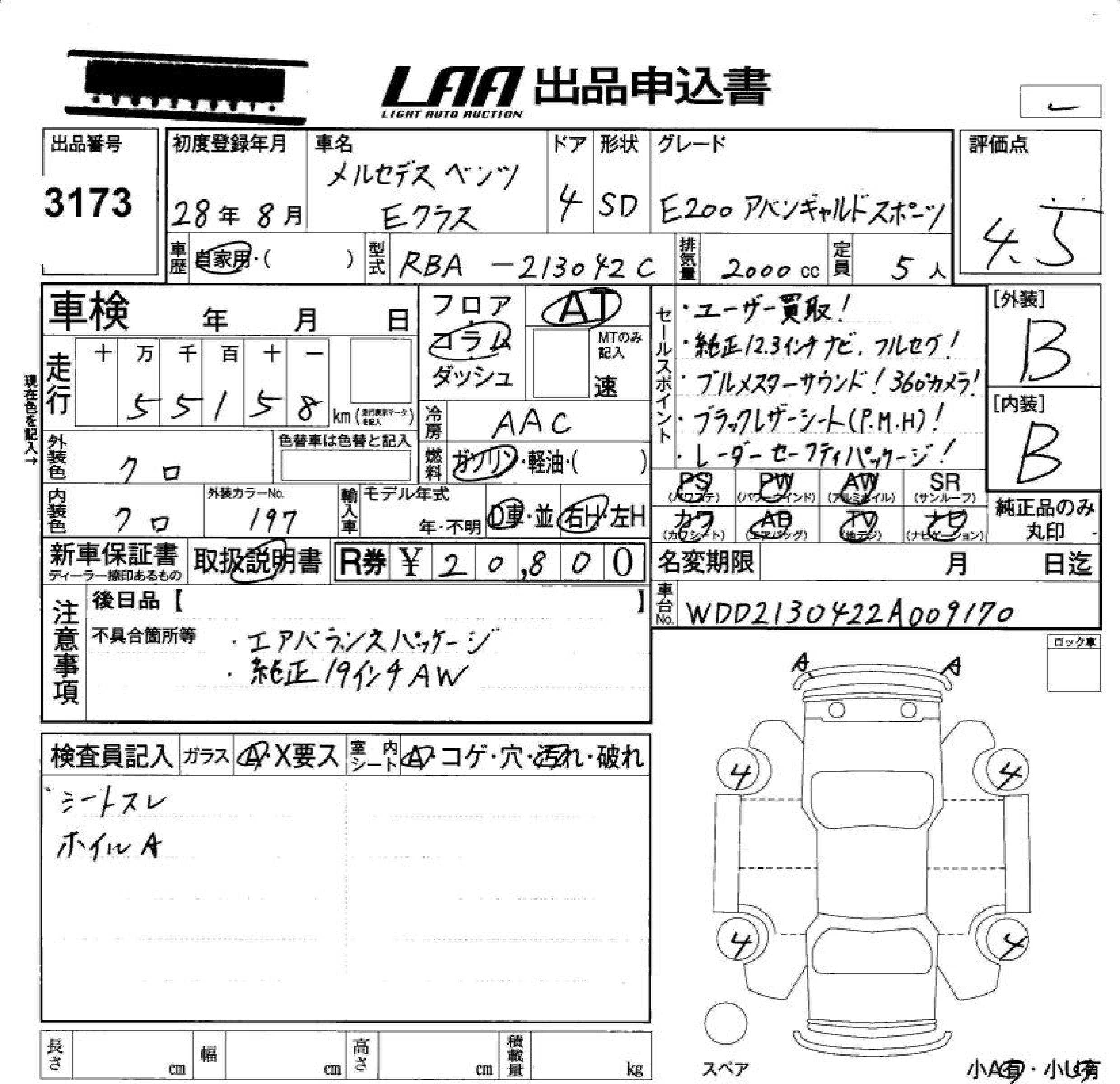 MERCEDES-BENZ E CLASS E200 AVANTGARDE SPOILER - лот 3173