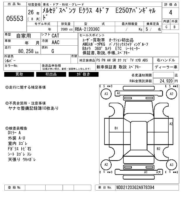 MERCEDES-BENZ E CLASS E250 AVANTGARDE - лот 5553
