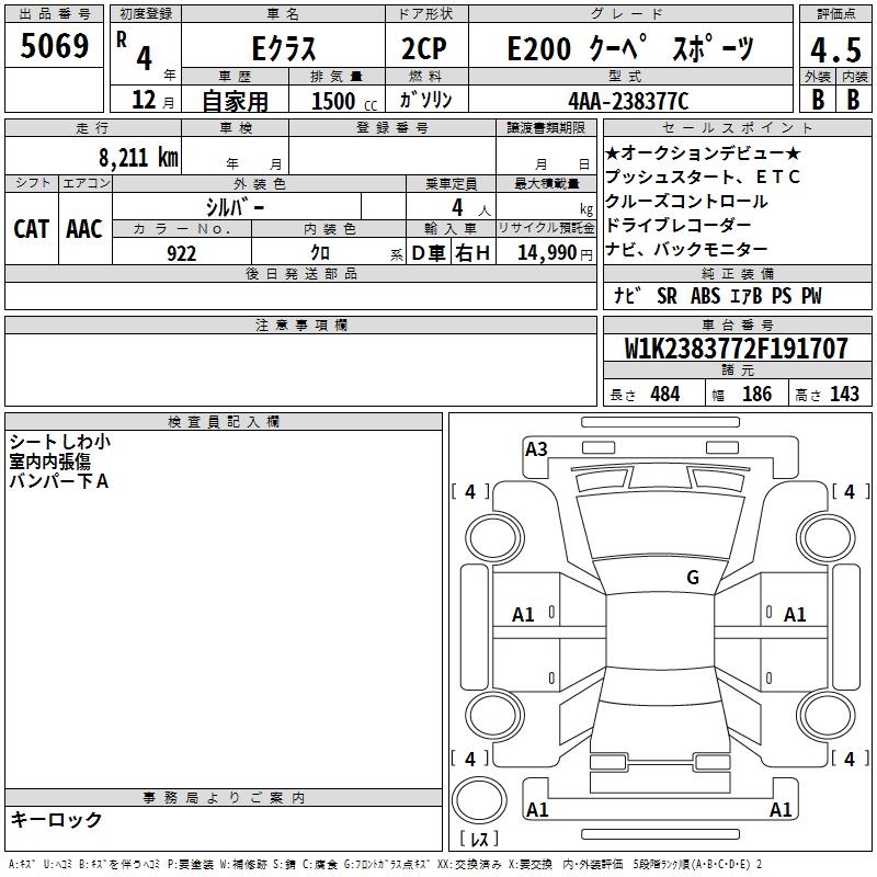 MERCEDES-BENZ E CLASS E200 COUPE SPORT - лот 5069