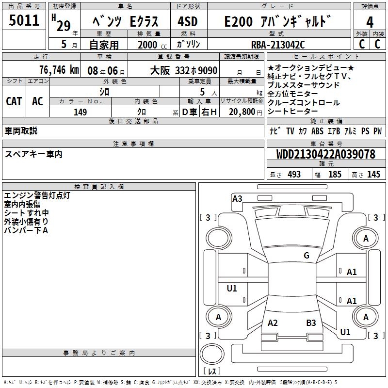 MERCEDES-BENZ E CLASS E200 AVANTGARDE - лот 5011