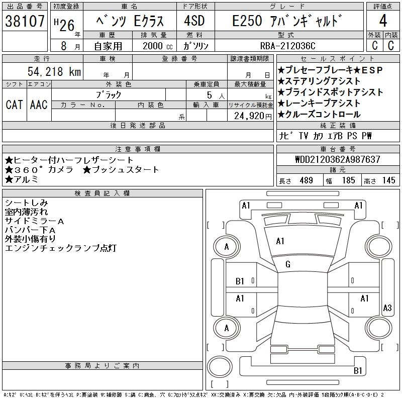 MERCEDES-BENZ E CLASS E250 AVANTGARDE - лот 38107