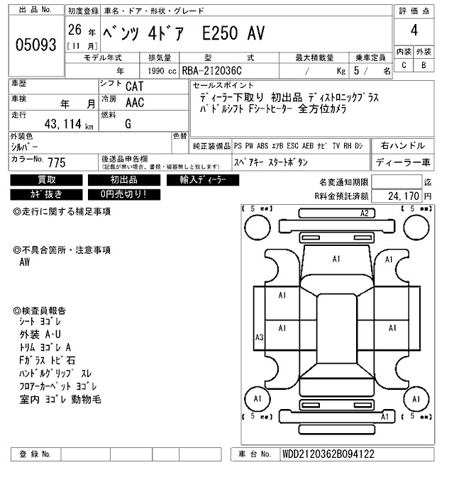 MERCEDES-BENZ E CLASS E250 AV - лот 5093