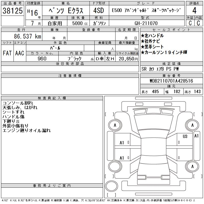 MERCEDES-BENZ E CLASS - лот 38125