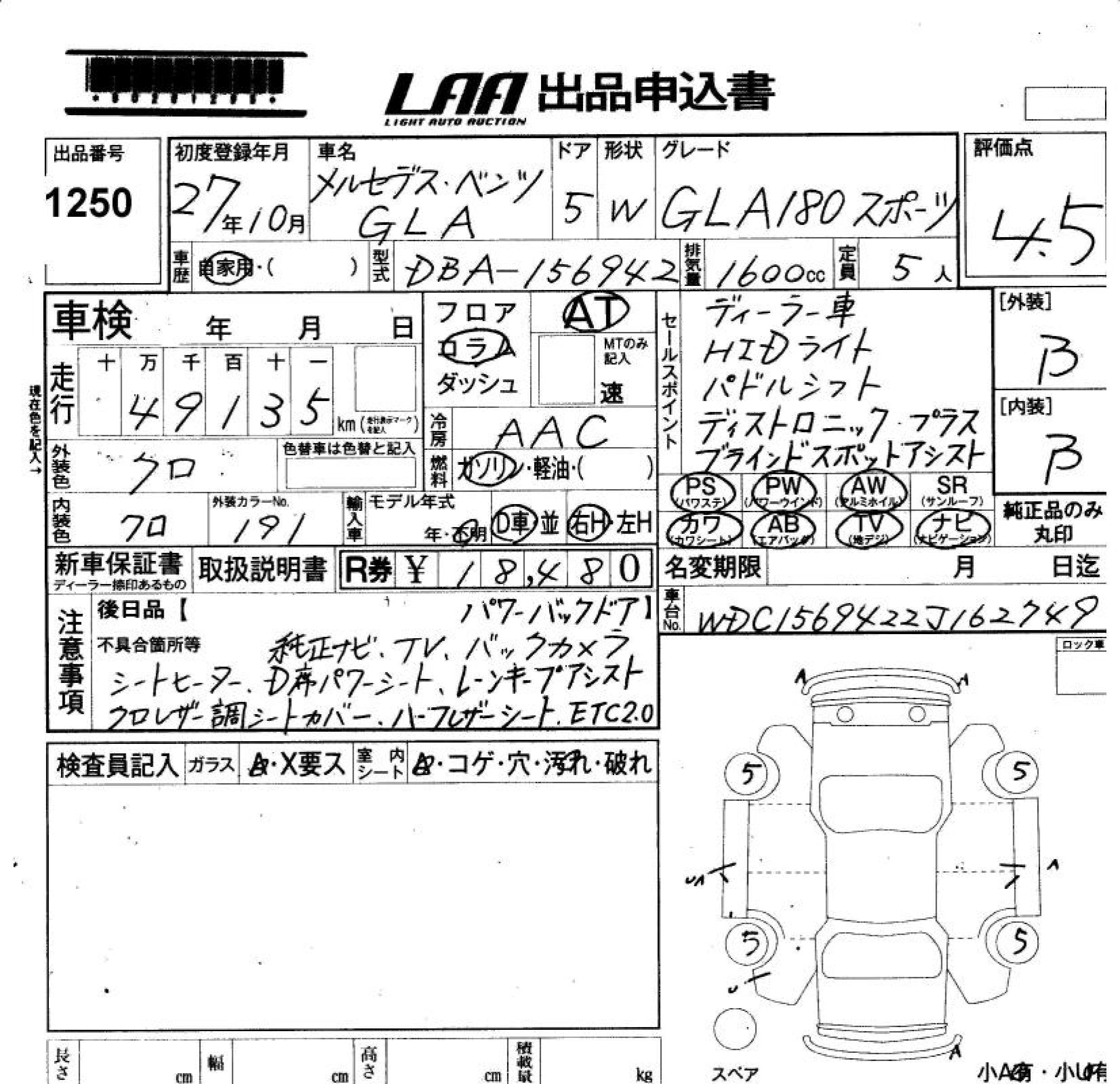 MERCEDES-BENZ GLA - лот 1250