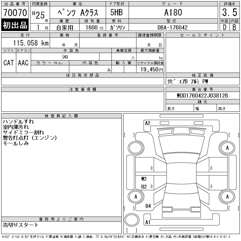 MERCEDES A CLASS - лот 70070