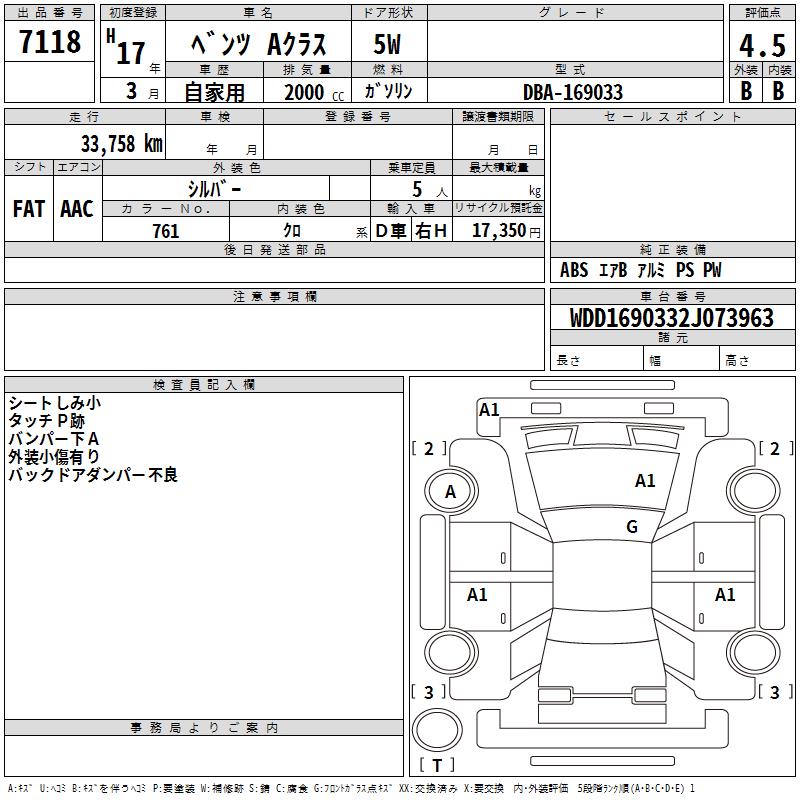 MERCEDES A CLASS - лот 7118