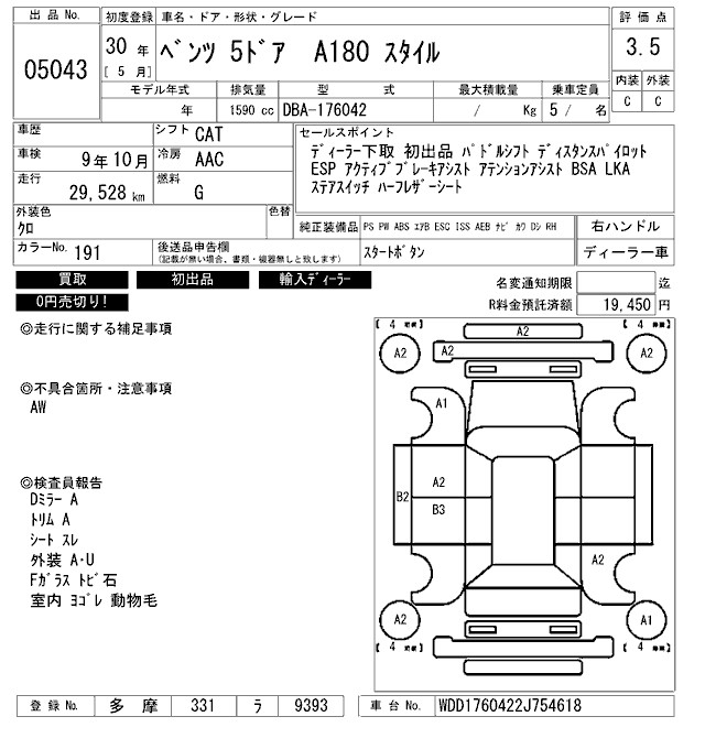 MERCEDES A CLASS - лот 5043