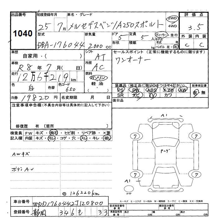 MERCEDES A CLASS - лот 1040