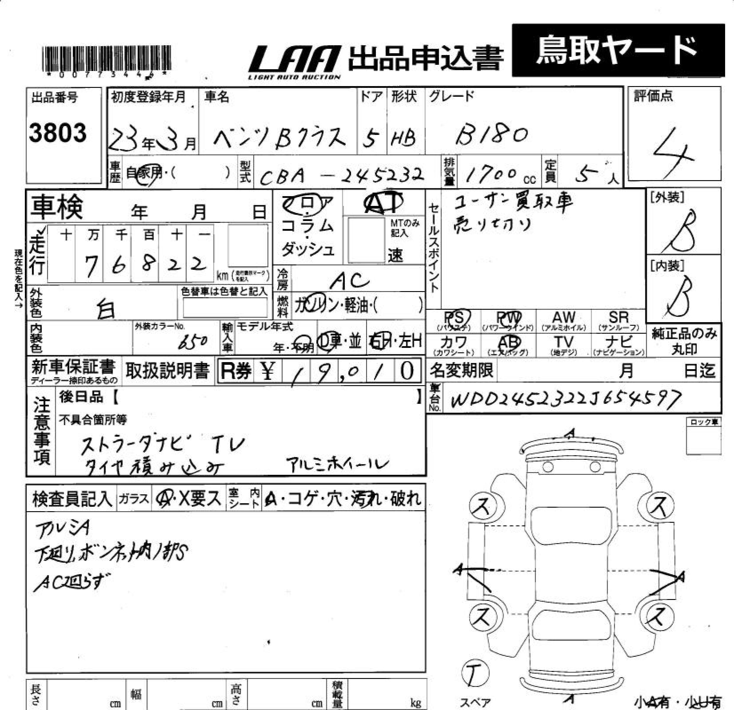 MERCEDES B CLASS - лот 3803