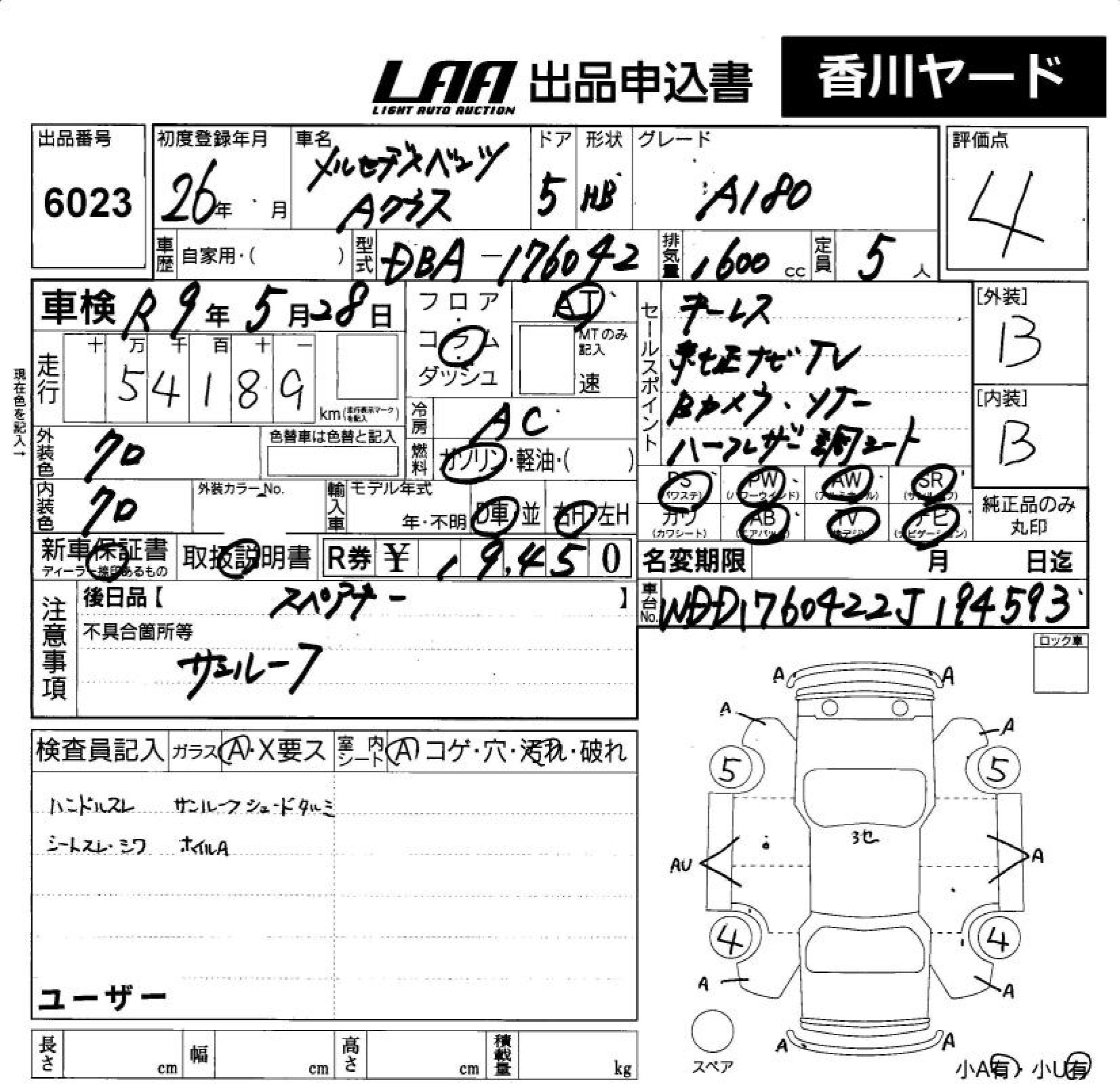 MERCEDES BENZ A CLASS - лот 6023