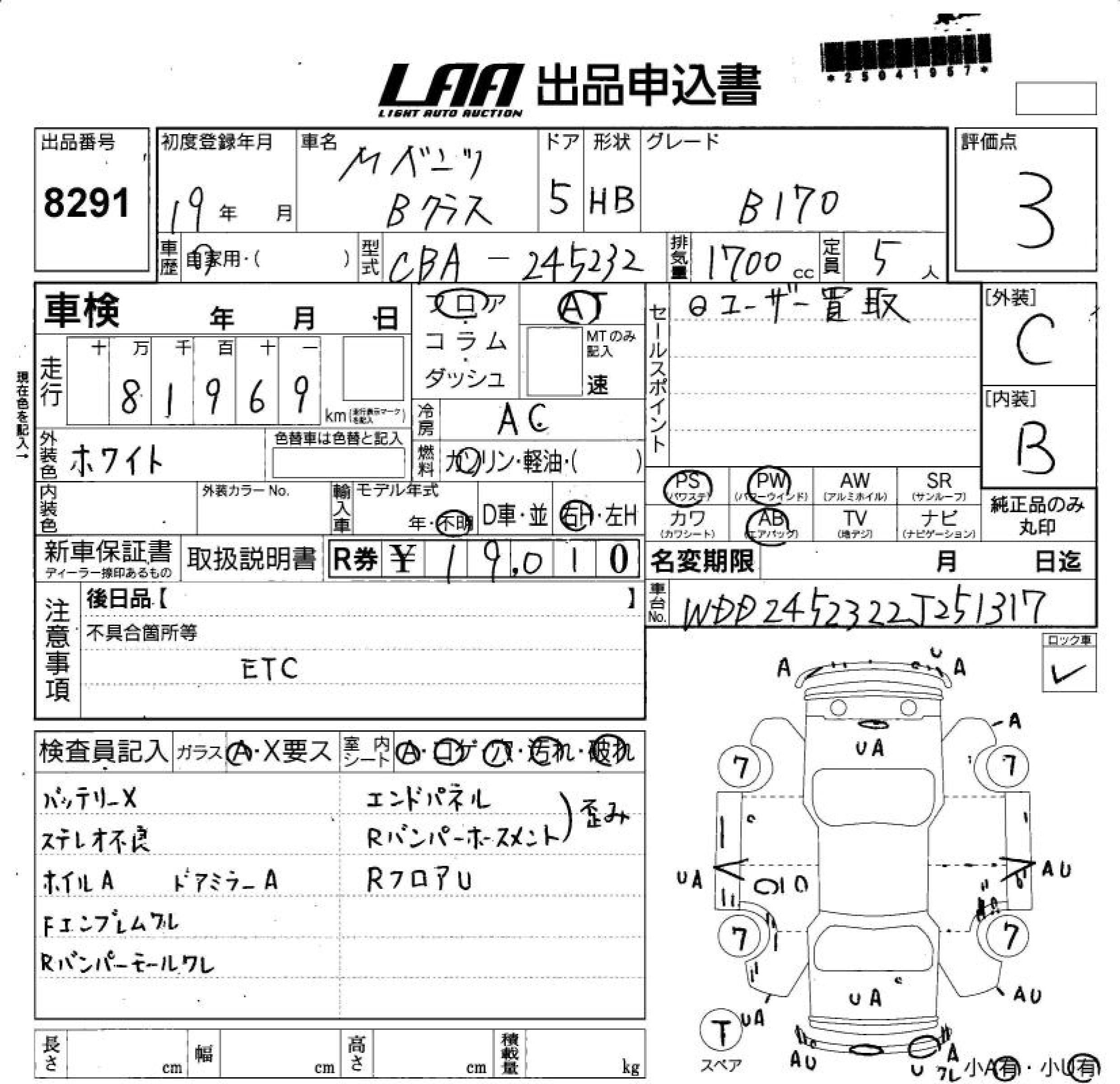 MERCEDES BENZ B CLASS - лот 8291