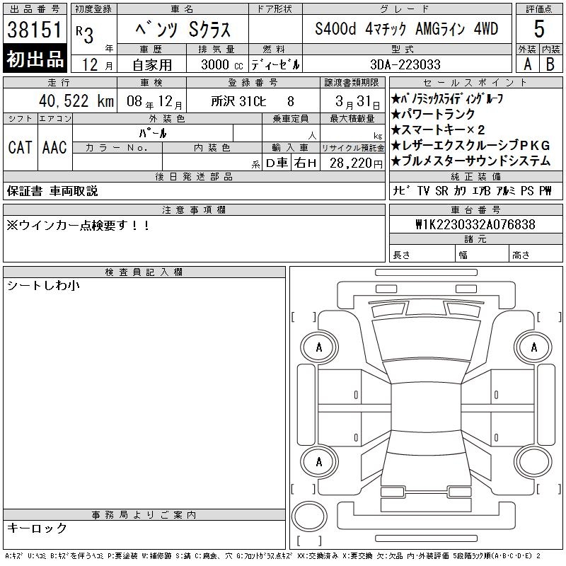 MERCEDES BENZ S CLASS - лот 38151