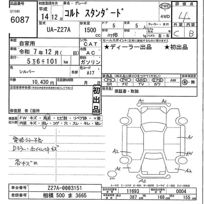 MITSUBISHI COLT STANDARD - лот 6087