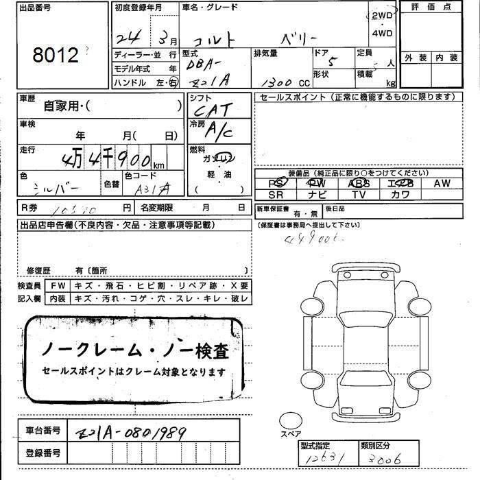 MITSUBISHI COLT BERRY - лот 8012