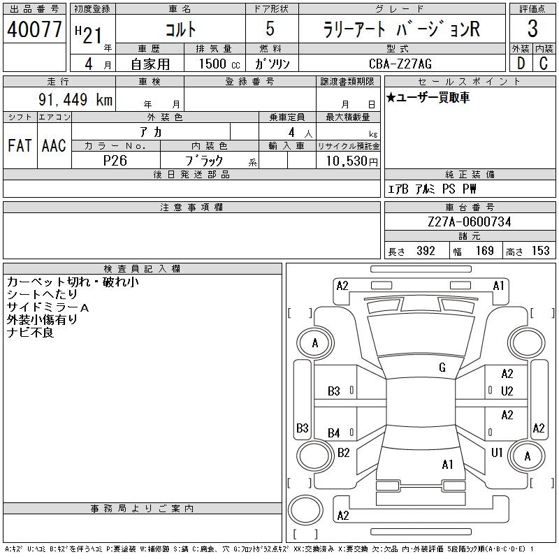 MITSUBISHI COLT RALLIART VERSION R - лот 40077