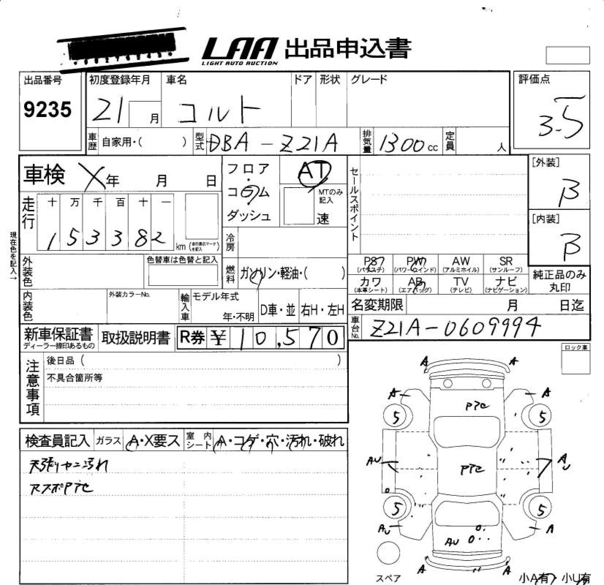 MITSUBISHI COLT - лот 9235