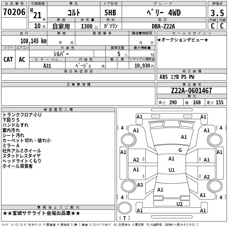 MITSUBISHI COLT - лот 70206
