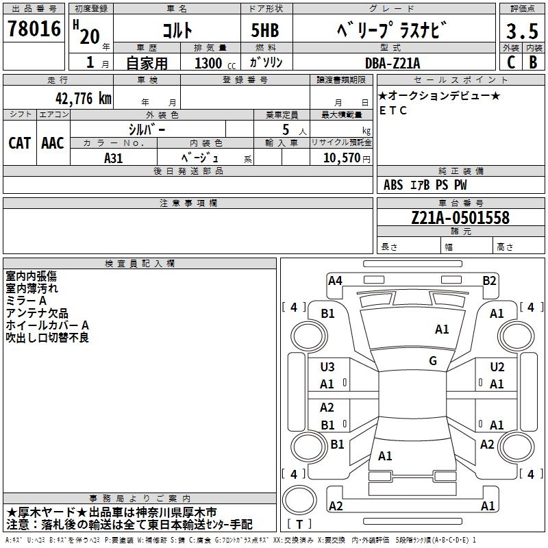 MITSUBISHI COLT - лот 78016