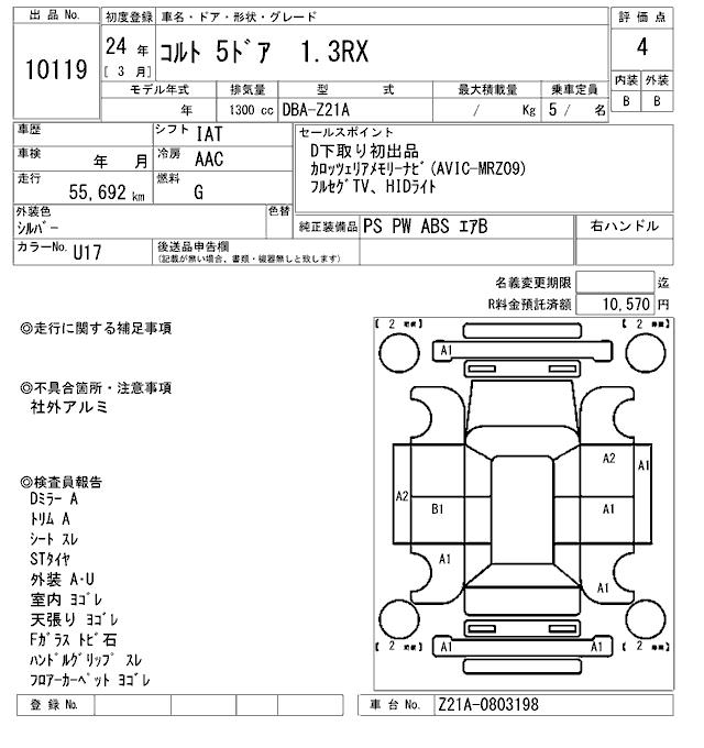 MITSUBISHI COLT - лот 10119