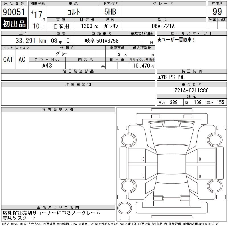 MITSUBISHI COLT - лот 90051