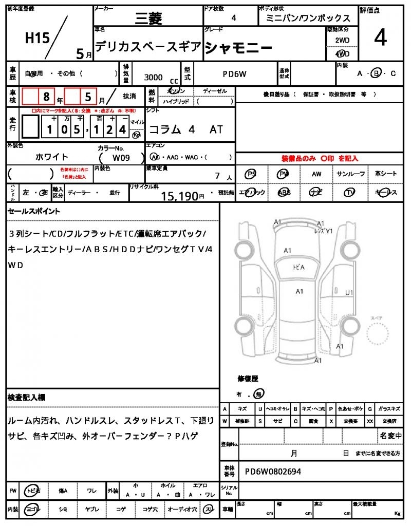 Все аукционы MITSUBISHI DELICA SPACE GEAR