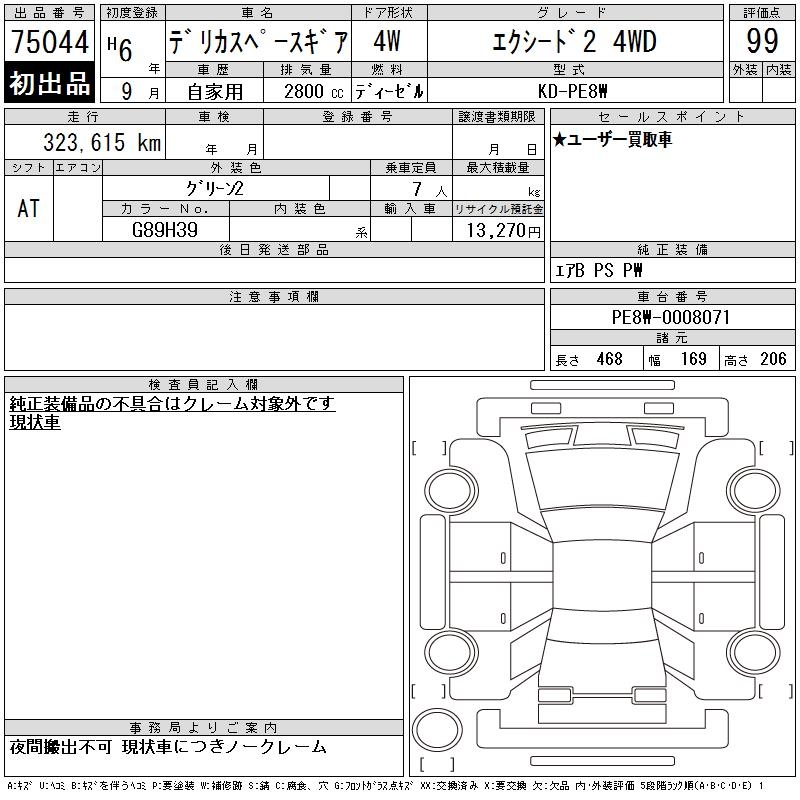 MITSUBISHI DELICA SPACE GEAR - лот 75044