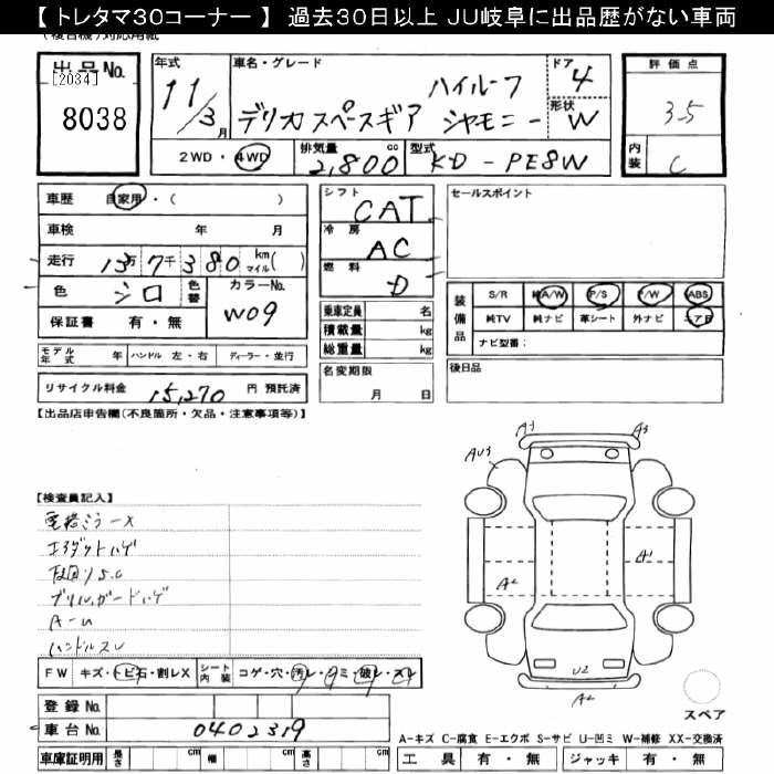 MITSUBISHI DELICA SPACE GEAR - лот 8038