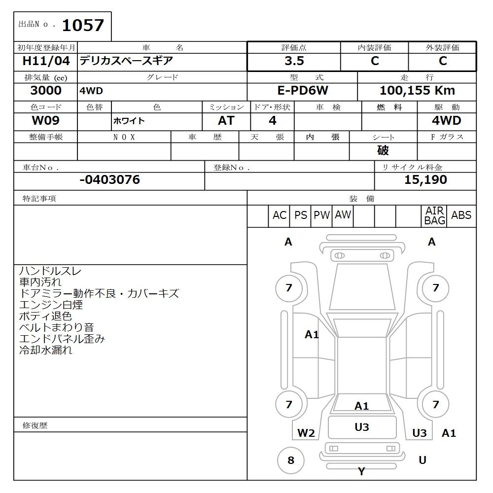 Все аукционы MITSUBISHI DELICA SPACE GEAR