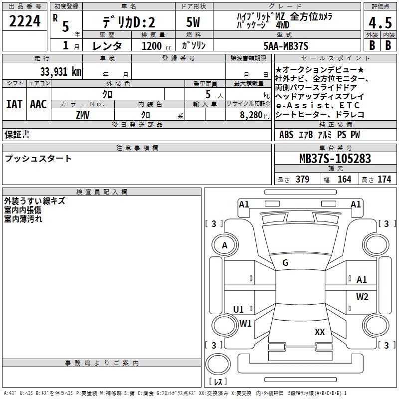 MITSUBISHI DELICA D:2 HV MZZEN HOWE I CAMERA IS 4WD - лот 2224