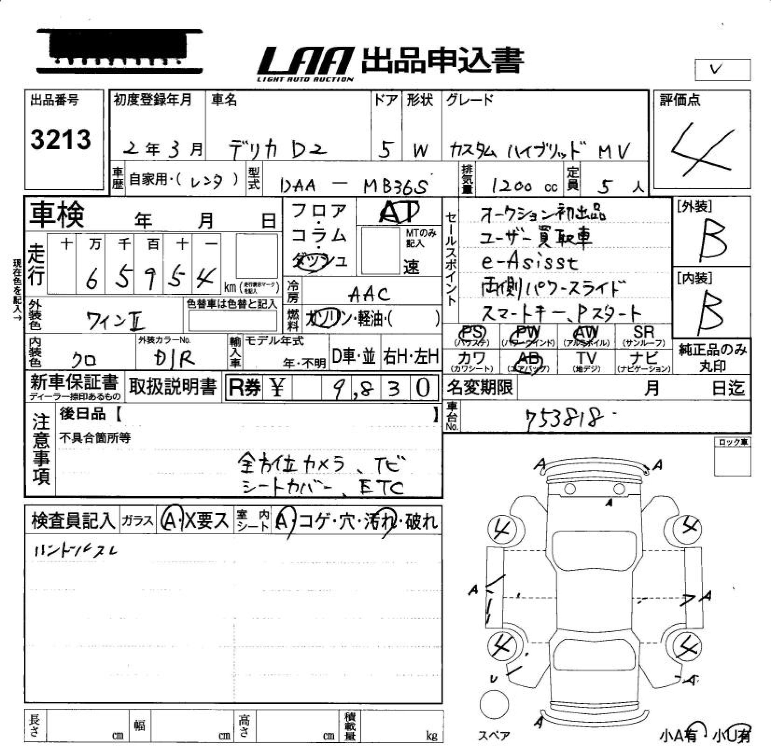 MITSUBISHI DELICA D:2 CUSTOM HYBRID MV - лот 3213