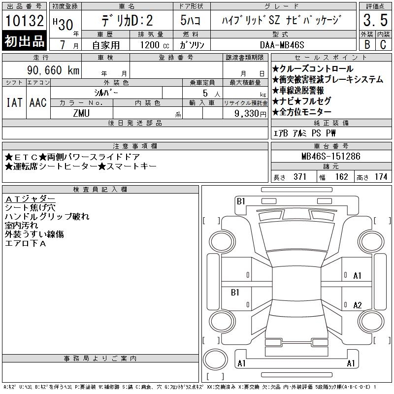 MITSUBISHI DELICA D:2 HYBRID SZ NAVI PACKAGE - лот 10132