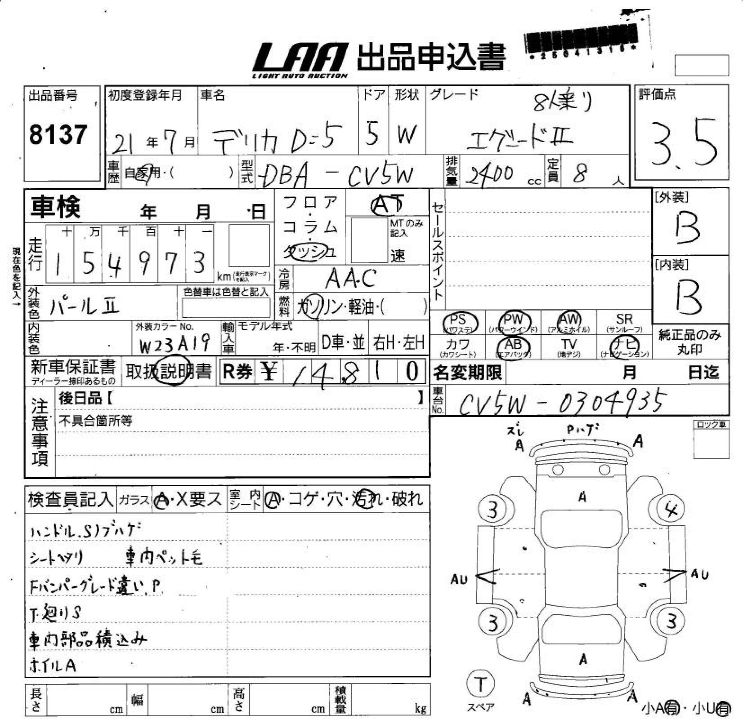 Все аукционы MITSUBISHI DELICA D:5