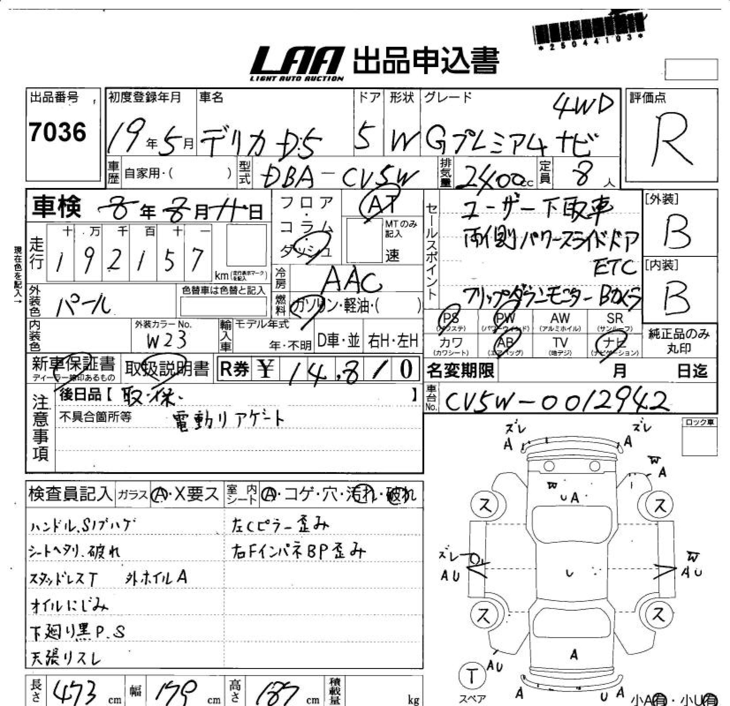 Все аукционы MITSUBISHI DELICA D:5