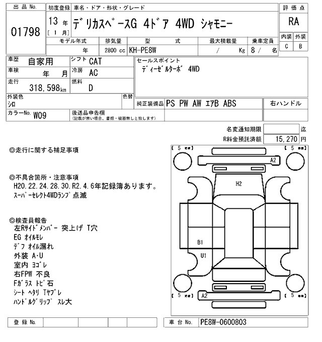 MITSUBISHI DELICA SPACE GEAR - лот 1798