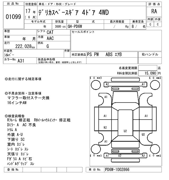 Все аукционы MITSUBISHI DELICA SPACE GEAR