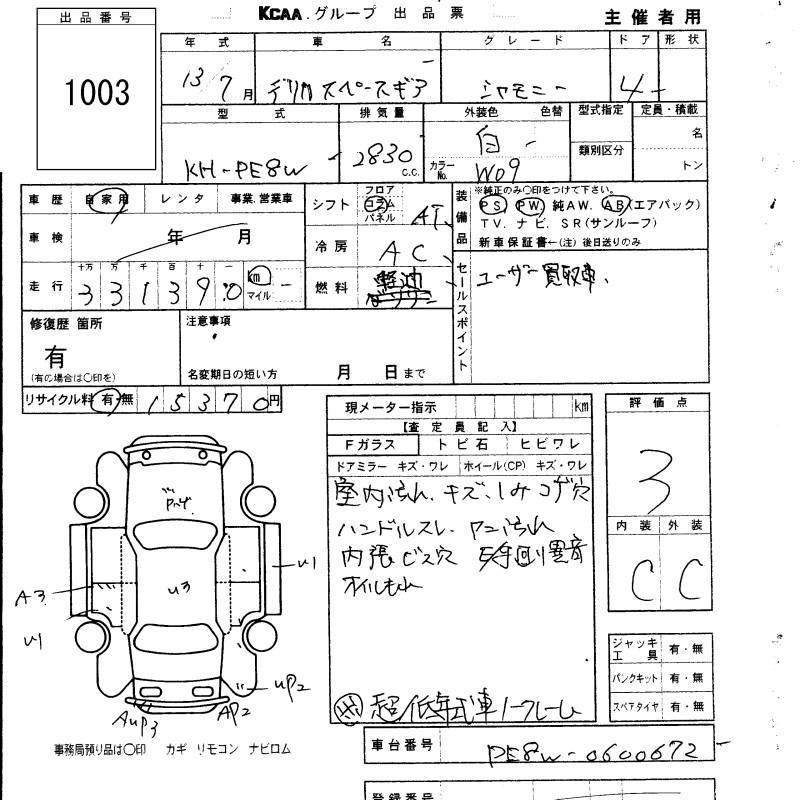 MITSUBISHI DELICA SPACE GEAR - лот 1003