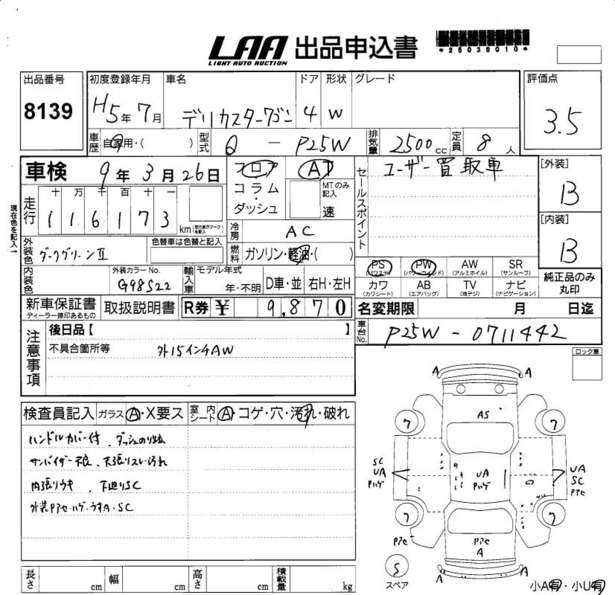 MITSUBISHI DELICA WAGON - лот 8139