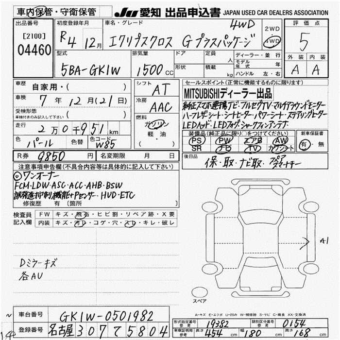 MITSUBISHI ECLIPSE CROSS G PLUS PACKAGE 4WD - лот 4460