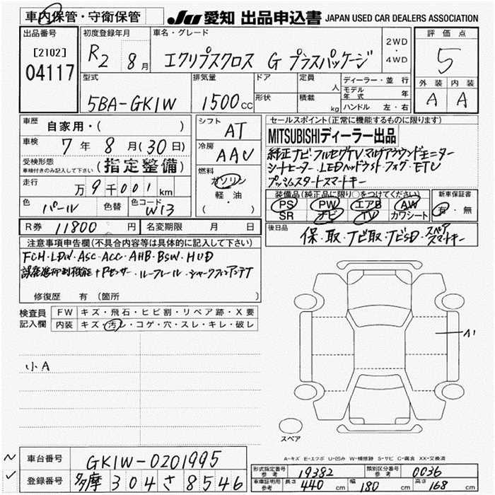 MITSUBISHI ECLIPSE CROSS G PLUS PACKAGE - лот 4117