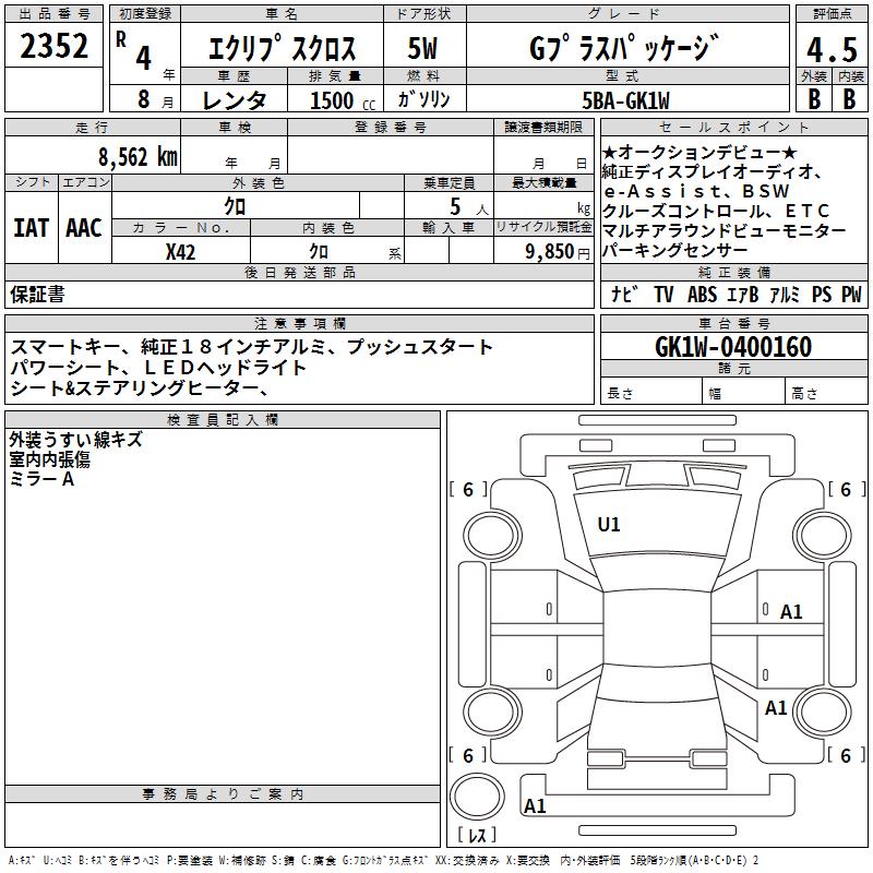 MITSUBISHI ECLIPSE CROSS G PLUS PACKAGE - лот 2352