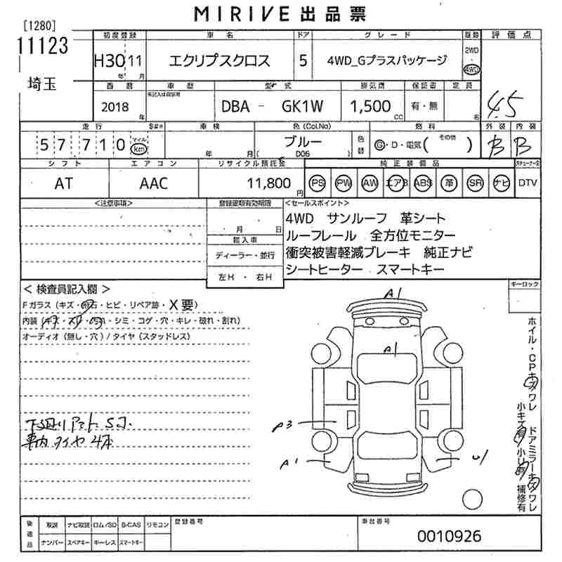 MITSUBISHI ECLIPSE CROSS 4WD_G PLUS PACKAGE - лот 11123