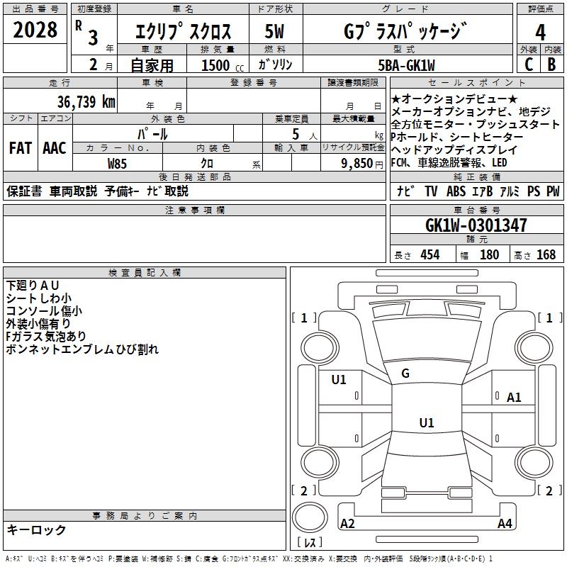 MITSUBISHI ECLIPSE CROSS G PLUS PACKAGE - лот 2028