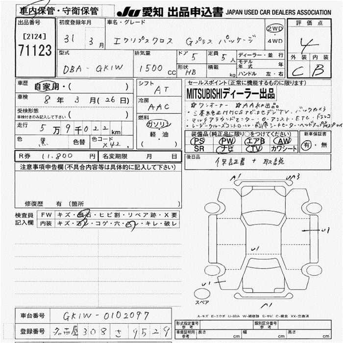 MITSUBISHI ECLIPSE CROSS G PLUS PACKAGE - лот 71123