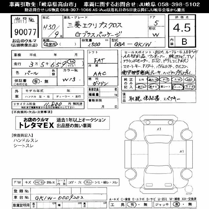 MITSUBISHI ECLIPSE CROSS G PLUS PACKAGE - лот 90077
