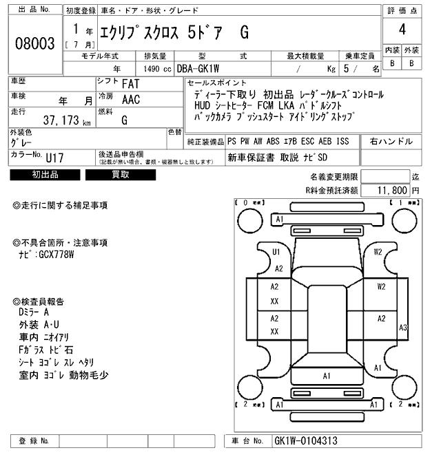 Оборудование: PS PW AW ABS подушка безопасности ESC расстояние 37,173km депозит уплачен 11,800 иен