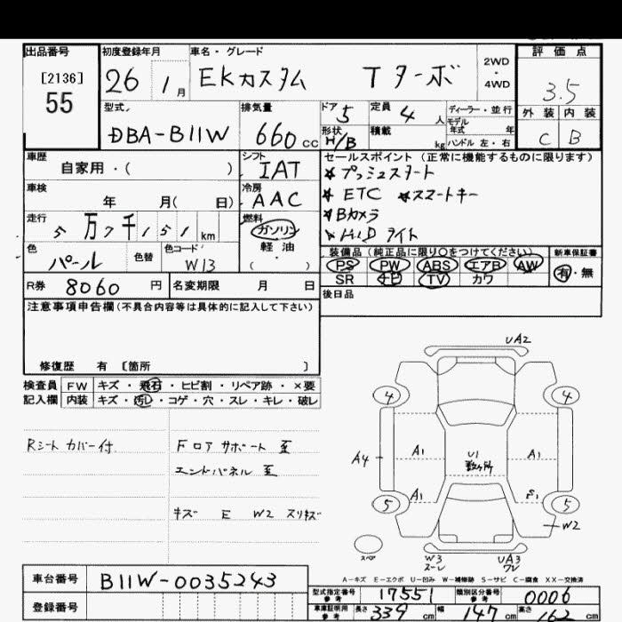 MITSUBISHI EK CUSTOM - лот 55