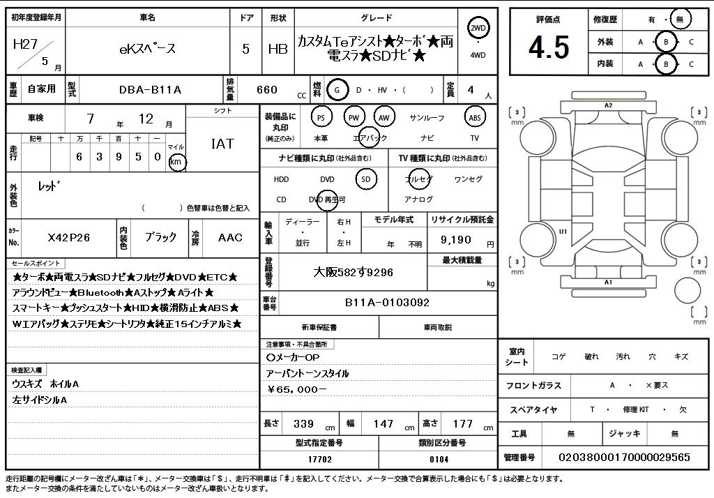 MITSUBISHI EK SPACE CUSTOM, 2015